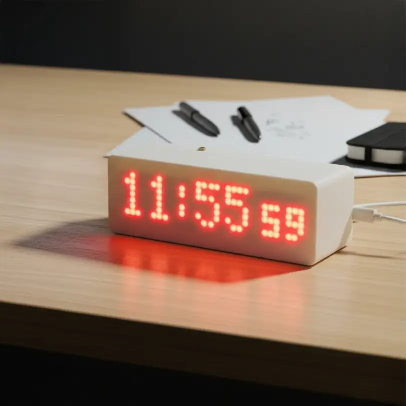 ⌚ ساعة ذكية DIY باستخدام شاشة مصفوفة عرض نقطية ومتحكم ESP8266.. 🌐 تتصل الساعة بالإنترنت وتضبط الوقت تلقائياً عبر خادم NTP دون الحاجة إلى أي تعديل يدوي. 💻 كما تحتوي على واجهة ويب سهلة الاستخدام تتيح إعداد وتخصيص الساعة مباشرة من المتصفح. 💡 مزوّدة بخاصية تعديل السطوع التلقائي حسب الإضاءة المحيطة لراحة أفضل للعينين. 🔌 تعمل بجهود 5 فولت عبر مدخل USB Type-C لسهولة التوصيل والتشغيل. ⚡هذا المنتج يجمع بين البساطة، الدقة، وسهولة التحكم، ليمنحك تجربة مميزة لعشاق الإلكترونيات والمشاريع المبتكرة. ✨ تتميز هذه الساعة بتصميم عصري أنيق يضيف لمسة ديكور رائعة لمكتبك أو غرفتك، حيث تجمع بين الوظيفة العملية والجمال في آن واحد.